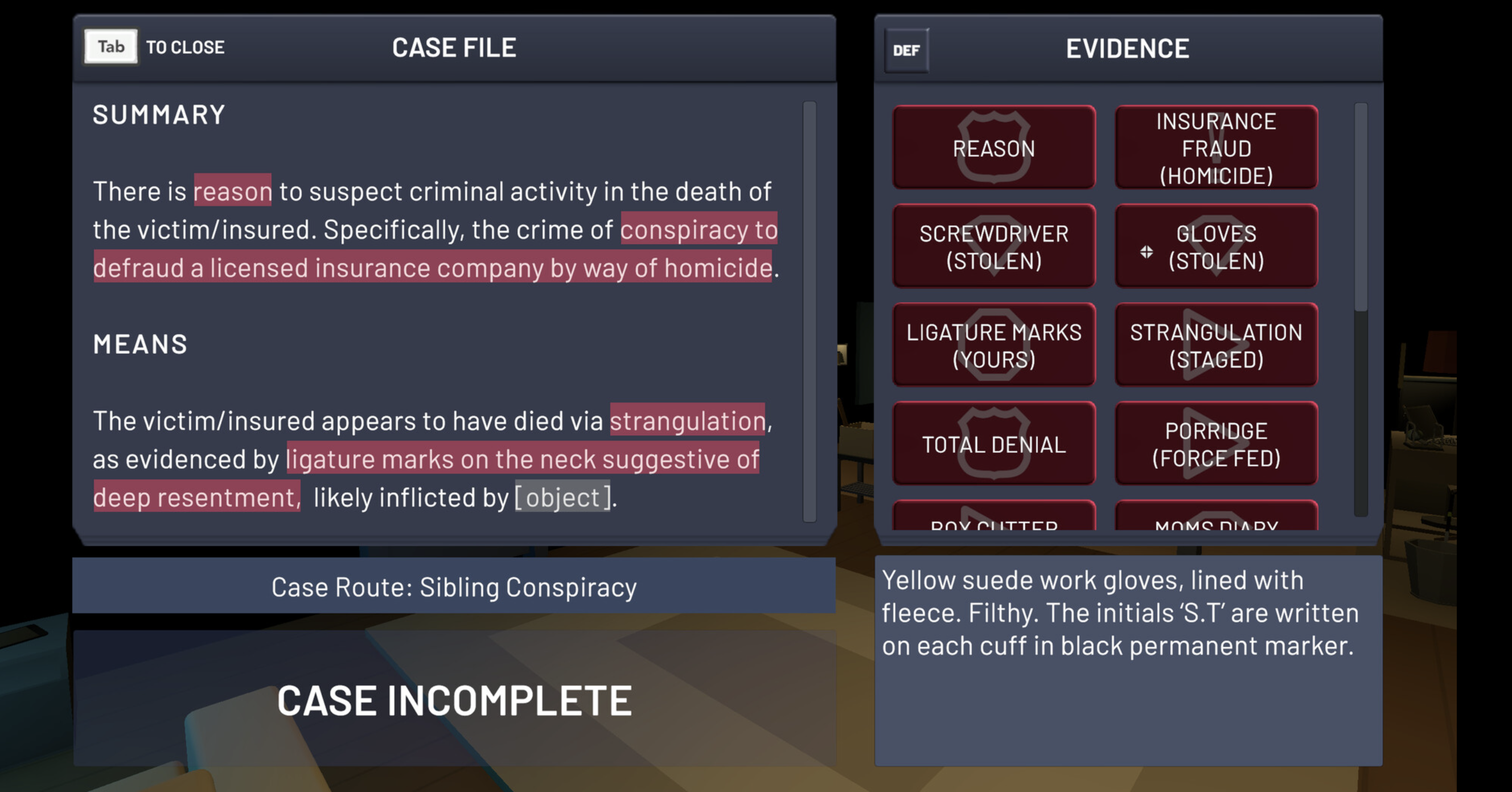 CLAWBACK is a first-person exploration and detective game in which your goal is to falsify death investigations and assemble manufactured evidence for survival and profit.